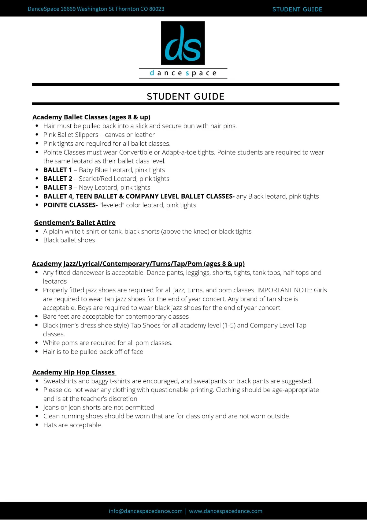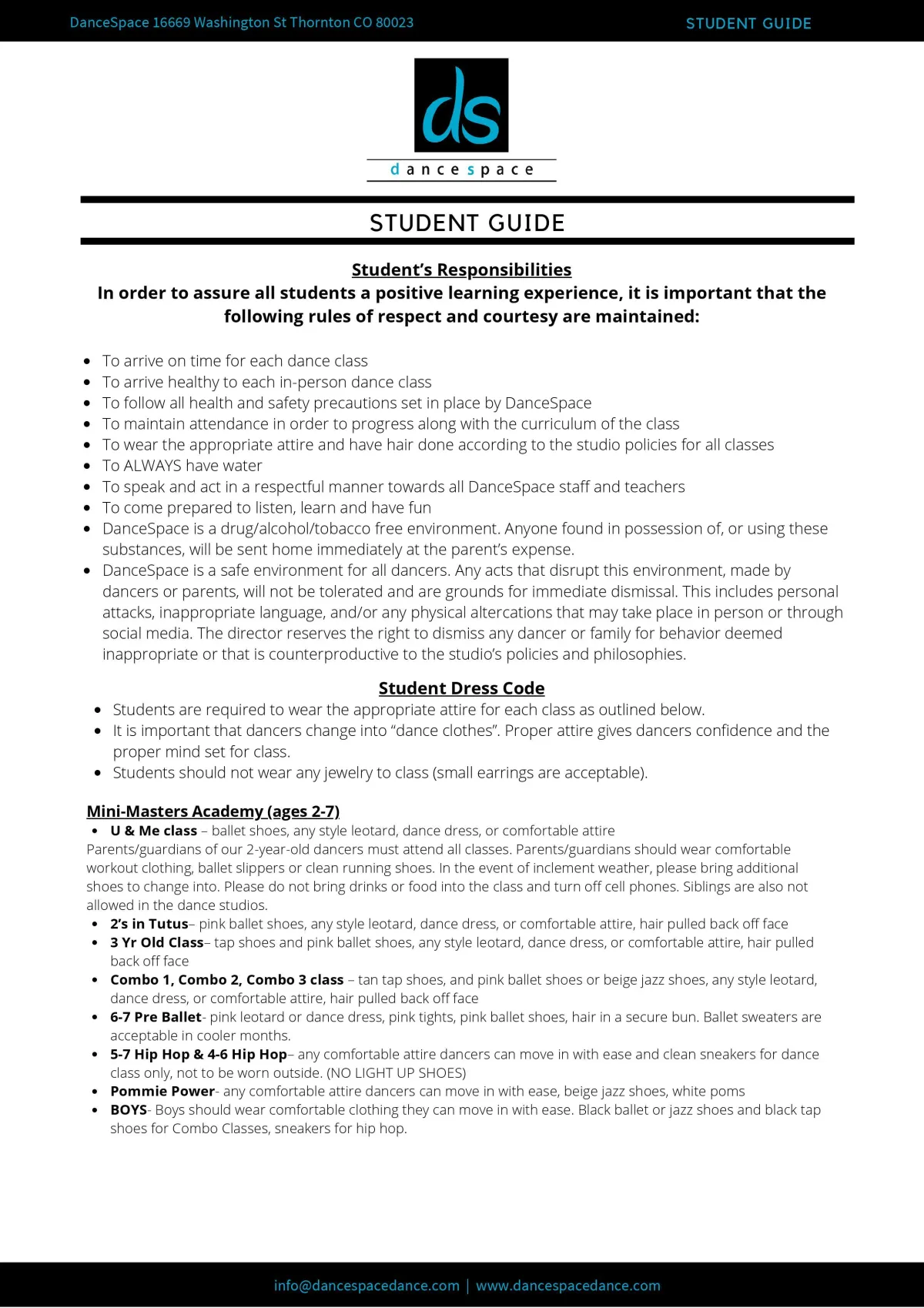 I agree to the terms outlined in the DanceSpace Student Guide.